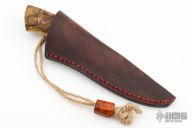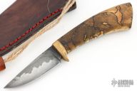 This Utility EDC by Last Knives features a hand forged hand rub satin finished blade with a nice hamon, .150" blade stock and .720" blade depth, hidden tang construction. The handle has a textured brass guard and spalted wood grip. Comes with a brown leather sheath and COA. New from maker.