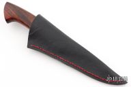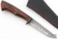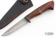 This Hunter by Last Knives features a hand forged hand rub satin finished blade with a nice hamon, .174" blade stock and .824" blade depth, hidden tang construction. The handle has a blued mild steel guard and rosewood grip. Comes with a black leather sheath and COA. New from maker.