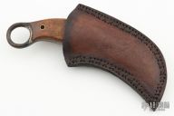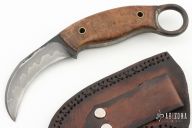 This Karambit by Last Knives features a hand forged hand rub satin finished blade with a nice hamon, .248" blade stock and .886" blade depth, full tang construction. The handle has teak burl wood scales. Comes with a brown leather sheath and COA. New from maker.
