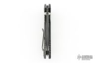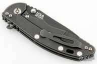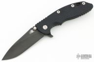 This 3.5" XM-18 flipper from Hinderer Knives has a battle black blade with notched thumbrest and flipper, no choil. Black G-10 scale and a battle black finished titanium frame and pocket clip. Reversible pocket clip. Strong lock up, nice detent and blade seating is center. Includes original box, extra bushings and papers. Excellent Condition.