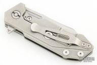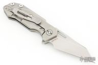 This Half Track from Hinderer Knives features a stonewash finished blade with fullers, notched thumbrest and flipper. The handle has a stonewash finished titanium frame with a black G-10 scale. Titanium clip is positioned for tip up, right hand carry. Comes with original box and extra hardware. Excellent Condition.
