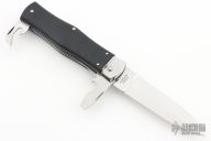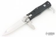 This lever auto from Mikov Knives has a mirror polished spear point blade with false top edge. The handle has stainless steel bolsters and liners, plastic scales, stainless steel backspacer. Has zipper case. Excellent condition.