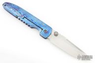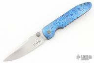 This Spire from Zero Knives features a hand rub satin finished blade with swedge, notched thumbrest and dual thumbstuds. The handle has timascus scales with a matching tip up clip and backspacer. Nice detent, lockup and blade seating. Comes with a zippered case. Excellent condition.
