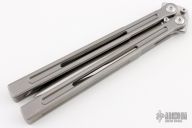 Petrel Balisong collaboration between from Maxace & Midnightcat Studios. It has a satin finished blade with bead blast finish titanium handles. Comes with hard case and extra hardware. Has a few light scuffs, otherwise excellent condition.