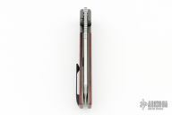 The RR Station features a 'Railcar' shaped, hollow ground Vanax blade. The Vanax blade has a belt satin finish with a bead blasted fuller and satin flats.  The bead blasted titanium bolster lock is paired with fat carbon fiber inlays, black hardware and pivot, with the Knife Standards black milled titanium clip.  Has a couple of light scuffs on the blade otherwise the knife is in Excellent Condition.