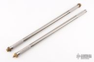 "Byrd" Survival Staff Spear Extension for Randall Model 18 Survival Knife. 49.5" stainless steel spear extension hand made by Floyd Byrd for the Randall Model 18 Survival Knife. This one is two 23.5" sections with a knurling on both ends, brass skull crusher cap at the end, brass coupler between the tubes, and a brass coupler for the Model 18 to attach. Probably made late 1980s. Has a scratches, otherwise excellent condition.