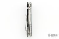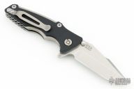 This Eklipse Tri-Way by Hinderer Knives features a stonewashed harpoon spanto blade with dual thumbstuds, flipper and notched thumbrest. The handle has a stonewashed titanium frame with black G-10 scales and titanium clip and hardware. Nice detent, lockup and blade seating. Comes with original box, card and extra hardware. New  condition.