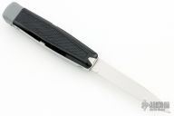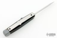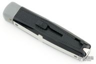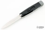 This vintage OTF Auto called "Le Superoto" features a mirror polished blade. The handle is black plastic with checkered metal sides and grey butt. Has some scratches, otherwise good condition for its age.