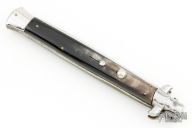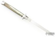 This 13" Picklock by INOX features a polished flat ground blade. The handle has stainless steel bolsters, front and rear, buffalo horn scales, brass liners, stainless spring. Has scratches and a couple small cracks, otherwise good condition.