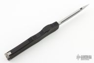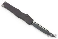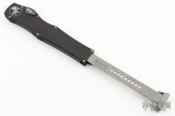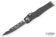 This Halo VI by Microtech knives features a black drop point blade with fullers and satin flats. The handle has a black aluminum frame with blasted stainless steel hardware and charging handle. Dated 07/2018 and #1634. Comes with Original box and papers. Has a couple light scuffs on the frame, otherwise excellent condition.