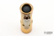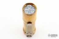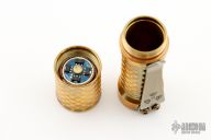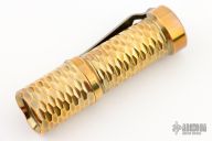 This Total Tesseract Trident by Hanko Machine Works is made from brass, it has a Tesseract pattern and  has a tip up titanium clip. Components: Nichia 219C High CRI (90+) 4000K. H17F Driver. Blue secondary. Comes with a mommahanks pouch. Excellent condition.