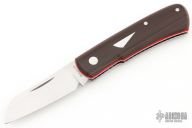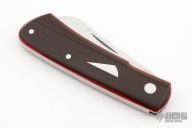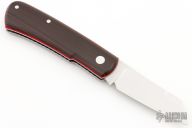 This Hitchcock slipjoint by Nick Timpson of Birdvis Knives features a satin finished blade with nail nick. The handle has crosscut vintage micarta covers, red liners, stainless steel escutcheon, stainless steel liners and spring. Has half-stop, flush in all positions. Comes with original box, sheath and COA dated 05/2023. Excellent condition.