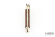 Angelo Campolin Sr. was born in 1923 in Maniago, Italy. He worked on perfecting his knife making skills before WWII and at this time made his first switchblades. After the war, in 1947 he started his company and made 30 stilettos with the marking “Angelo Campolin”. In the 1970’s Angelo’s son Gianni started to work in the company and they were specializing in folding hunting knives and also manual folding stilettos for the Robert Klaas company in Solingen Germany with their Kissing Cranes mark. In 2002 American switchblade collectors Dan Fuller, Brad West, and Tim Zinser were visiting Maniago and enjoying a few glasses of wine in a bar with Angelo Jr. and Gianni. The discussion was about a new name for some knife projects they wanted to pursue. It was Brad West that suggested the tang stamp should be AGA, for Angelo, Gianni, Angelo, thus representing three generations in the knife making business. The Campolins liked it and it stuck. In the beginning it was just a few items, but grew to the point where now there are 12 models and different scale options. The goal has been to offer quality switchblades using the old methods and traditions. Being a collector himself, Angelo Jr. knows what others like. The company headquarters has moved to Austria with production still in the original Maniago shop, as well as the others in Maniago that produce the knives for A.G.A. Campolin.