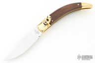 Angelo Campolin Sr. was born in 1923 in Maniago, Italy. He worked on perfecting his knife making skills before WWII and at this time made his first switchblades. After the war, in 1947 he started his company and made 30 stilettos with the marking “Angelo Campolin”. In the 1970’s Angelo’s son Gianni started to work in the company and they were specializing in folding hunting knives and also manual folding stilettos for the Robert Klaas company in Solingen Germany with their Kissing Cranes mark. In 2002 American switchblade collectors Dan Fuller, Brad West, and Tim Zinser were visiting Maniago and enjoying a few glasses of wine in a bar with Angelo Jr. and Gianni. The discussion was about a new name for some knife projects they wanted to pursue. It was Brad West that suggested the tang stamp should be AGA, for Angelo, Gianni, Angelo, thus representing three generations in the knife making business. The Campolins liked it and it stuck. In the beginning it was just a few items, but grew to the point where now there are 12 models and different scale options. The goal has been to offer quality switchblades using the old methods and traditions. Being a collector himself, Angelo Jr. knows what others like. The company headquarters has moved to Austria with production still in the original Maniago shop, as well as the others in Maniago that produce the knives for A.G.A. Campolin.