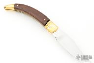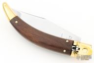 This Diana by AGA Campolin features a mirror polished blade. The handle has mirror polished brass bolsters and lever release, rosewood scales, brass liners, stainless steel backspacer. Nice action, nice lockup and blade seating. Excellent condition. Dated 2021. Comes with a leather sheath. This one has been tuned and polished by Greg's Effects and comes with a COA dated Dec 3, 2023.