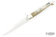 Angelo Campolin Sr. was born in 1923 in Maniago, Italy. He worked on perfecting his knife making skills before WWII and at this time made his first switchblades. After the war, in 1947 he started his company and made 30 stilettos with the marking “Angelo Campolin”. In the 1970’s Angelo’s son Gianni started to work in the company and they were specializing in folding hunting knives and also manual folding stilettos for the Robert Klaas company in Solingen Germany with their Kissing Cranes mark. In 2002 American switchblade collectors Dan Fuller, Brad West, and Tim Zinser were visiting Maniago and enjoying a few glasses of wine in a bar with Angelo Jr. and Gianni. The discussion was about a new name for some knife projects they wanted to pursue. It was Brad West that suggested the tang stamp should be AGA, for Angelo, Gianni, Angelo, thus representing three generations in the knife making business. The Campolins liked it and it stuck. In the beginning it was just a few items, but grew to the point where now there are 12 models and different scale options. The goal has been to offer quality switchblades using the old methods and traditions. Being a collector himself, Angelo Jr. knows what others like. The company headquarters has moved to Austria with production still in the original Maniago shop, as well as the others in Maniago that produce the knives for A.G.A. Campolin.