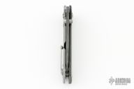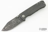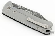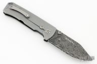 This knife features a Damascus drop point blade with dual thumbstuds. The handle handle has a burlpa micarta and titanium frame. Tip up titanium pocket clip. Includes original box and papers. Excellent Condition.