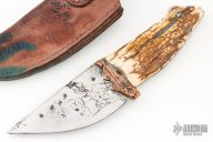 Along the way I realized I now had the tools to build my own knife blades. I work with steel, but work it hard and slow so do not do tempering. I still often buy good blades from a blade maker, and think I prefer the stories told in the handle materials best. I do my own acid etched scenes in the steel. I?m now maybe one of the experts on raw material, doing identifications for museums, restorations , appraisals, as well as doing my own art and supplying others. I have 9 buildings full of raw materials now. ?Truckloads? I have customers from all over the world come find me in Nenana Alaska on a pilgrimage to look over my materials, who are not disappointed. So I have lots to choose from when building a knife. I stopped counting my custom one of a kind art pieces at 10,00 items over 10 years ago. I?m a full time artist.