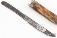 Along the way I realized I now had the tools to build my own knife blades. I work with steel, but work it hard and slow so do not do tempering. I still often buy good blades from a blade maker, and think I prefer the stories told in the handle materials best. I do my own acid etched scenes in the steel. I?m now maybe one of the experts on raw material, doing identifications for museums, restorations , appraisals, as well as doing my own art and supplying others. I have 9 buildings full of raw materials now. ?Truckloads? I have customers from all over the world come find me in Nenana Alaska on a pilgrimage to look over my materials, who are not disappointed. So I have lots to choose from when building a knife. I stopped counting my custom one of a kind art pieces at 10,00 items over 10 years ago. I?m a full time artist.