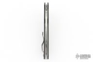 The “dropped” angle of the Introvert’s handle complements the hand’s natural ergonomics and maximizes the knife’s cutting leverage. Its construction includes full stainless steel liners capped with textured G-10 scales and a unique variant of the back lock mechanism that includes a machined slot to allow the blade’s flipper to pass through it. A reversible deep-pocket wire clip offers both left and right-side carry and, together with the knife’s other features, makes operation of the Introvert completely ambidextrous.