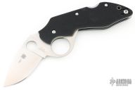 The Introvert’s full-flat-ground VG-10 stainless steel blade features Spyderco’s Trademark Round Hole and a Fred Perrin-inspired integral index-finger hole that anchors the knife into the user’s hand for exceptional grip security. The leading edge of the larger hole also functions as a flipper, allowing the blade to be swiftly opened with a stroke of the index finger.