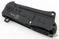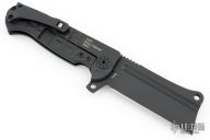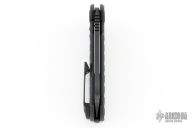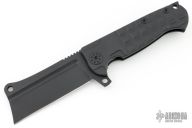 This ADV Mini Cleaver framelock flipper by Andre De Villiers features a black cerakoted blade with notched flipper and thumb rest. Handle has a black cerakoted titanium frame, matching titanium back spacer and titanium clip with roller. Nice smooth action, detent, lockup and blade seating. Excellent condition.