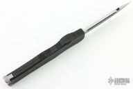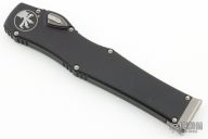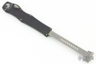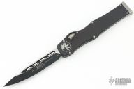 This Halo VI by Microtech knives features a black drop point blade with fullers and satin flats. The handle has a black aluminum frame with blasted stainless steel hardware and charging handle. Dated 03/2018 and #355. Comes with Original box and papers. Has a couple light scuffs on the frame, otherwise excellent condition.