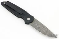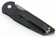 The TR-3 is one of Pro-Tech's most popular knives with law enforcement professionals and military. The TR-3 offers a multi-task 3.5" blade in a very slender thoughtfully designed handle. This limited edition TR-3 features a Vegas Forge "Vines and Roses" Damascus blade and black fish scale aluminum handle. Smooth coil spring action. Numbered #23 of 50. Has a couple of light scuffs on the pocket clip otherwise the knife is in Excellent condition.