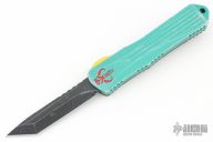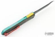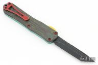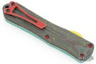 This Manticore-E by Heretic Knives features a battle black coated tanto blade with notched thumbrest. The handle has an aluminum frame with a camo carbon back cover, red stainless steel hardware and tip down clip.  Comes with original box, papers and sample tube of OTF Lube.  S/N 188.  Excellent Condition.