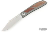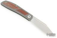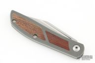 This slipjoing by Kody Eutsler features a stonewashed blade with fullers. The handle has a spiral milled titanium frame with endgrain vintage canvas micarta inlays, CPM154 spring. Has half stop, flush in all positions. Comes with COA and a leather slip sheath. Excellent condition.