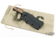 This RM2 by Duane Dwyer features a MilSpec Black Oxide coated blade with .207" blade stock and 1.365" blade depth, full tang construction with black/tan G-10 scales. Comes with a kydex sheath and COA. Excellent condition.