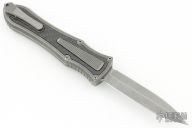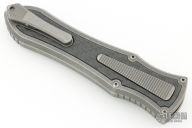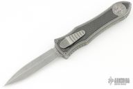This knife is a Deadlock Model C by Grant and Gavin Hawk. It has a double-edged stonewashed blade. The handle has carbon fiber inlays in the stonewashed titanium frame with a tip down spring clip, titanium. The thumb slide on the handle is also titanium and handle has a titanium overlay. DLC titanium clip and thumbslide. Comes with a cloth pouch. Grant and Gavin Hawk set out to create a double action OTF with no blade play.... They did it, NO blade play. Comes with tool and a zippered pouch. New condition.