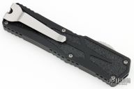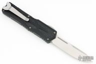 This Colossus by Heretic Knives features a stonewash finish blade with fullers and notched thumbrest. The handle has a black aluminum frame with non-slip inlays, checkered thumb slide, stainless steel tip down clip. Comes with original box. S/N 0196. Excellent Condition.