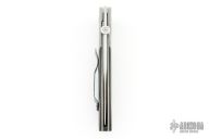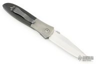 This Pre-Garage Viper 3 by Emerson features a satin finish blade with thumbdisc. The handle has dovetailed bead blast titanium bolsters, black linen micarta scales, bead blasted titanium liners, black linen micarta backspacer, and a tip up stainless steel clip. Includes a velcro case. Has scuffs and light scratches, otherwise good condition.