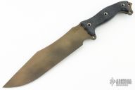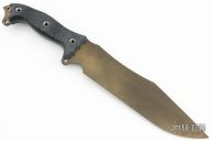 This Fusion Battle Cry by Busse Combat features a desert bronze coated blade with .222" blade stock and 2.224" blade depth, full tang construction. The handle has black G-10 scales. Excellent condition.