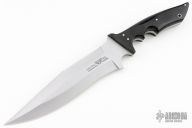 This Larry Battle Bowie by Paragon Cutlery Company features a bead blasted blade with sharpened top edge, .241" blade stock and 1.972" blade depth, full tang construction. The handle has black linen micarta scales with stainless steel pins and lanyard hole. Excellent condition. First Production Run.