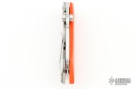 Without a doubt, this special run of our Anso 67 is sure to become the collector's piece to own. The brushed "orange peel" G-10 handle scale offers a stunning appearance to be sure. The satin finished blade is made of N690BO stainless steel, with a similarly finished titanium frame and clip. Sturdy framelock mechanism for reliability.