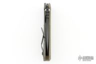 This MS SNG framelock folder by Mick Strider features a black blade and a MEFP green G-10 and flamed titanium frame and tip up titanium clip. Includes Hinderer "Lock Bar Stabilizer" for maximum reverse lock retention. Nice detent, lockup and blade seating. New condition.