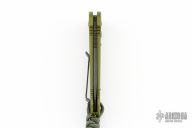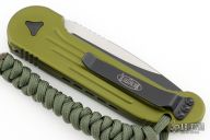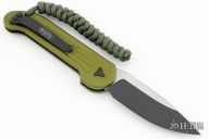 This LUDT by Microtech features a two-tone black finished blade. The handle has a green aluminum frame with black hardware and tip down clip. Comes with original box and papers. Dated 01/2023 and s/n 29814. Excellent Condition.