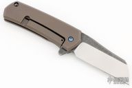 This Imp Framelock Flipper by NCC Knives features a stonewashed blade with hand ground bevels. The handle has a titanium frame with titanium hardware and tip up clip with hidden screws. Comes with soft pouch and hard case. Excellent condition.
