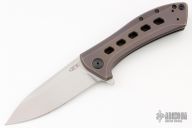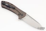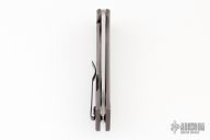 This 0801TI is a Todd Rexford design executed by Zero Tolerance. It features a tumble finished drop point blade with swedge and flipper. The handle is comprised of a titanium frame over black stand-offs. The black coated, deep carry clip can be positioned for left or right hand tip up carry. Excellent condition. #1986 Comes with original box and papers.