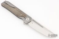 This Warrior 2 flipper by Reate is a Liong Mah design, it features a satin finished blade with a notched thumbrest and flipper. The handle has a milled and bead blast finished titanium frame with canvas micarta inlays , custom pivot, tip up titanium clip with ceramic ball, stainless lockface insert. Rides on bearings, nice detent, lockup and blade seating. Comes with zippered case. Excellent condition.