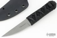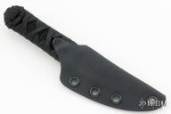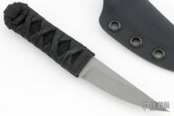 This Micro Aikuchi from Ben Tendick of B.R.T. Bladeworks features a tumbled kwaiken style blade with swedges. .166" Blade stock .696" Blade Depth. The handle has an epoxy soaked tsuka ito wrap over hemp cord under wrap.  Includes kydex sheath.  Includes C.O.A. New from maker.