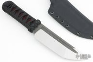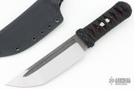 This Broad Tanto by Ben Tendick features a two-tone tanto style blade with-fullers and a hidden tang construction.  .223" Blade Stock.  1.768" Blade Depth.  The handle has a Tsuka Ito wrapped grip with stingray skin and a titanium menkui.  Includes a kydex sheath and COA.  Excellent Condition.
