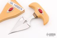 Gil Hibben lives and works in LaGrange, Kentucky. He began making knives part-time after his discharge from the Navy in 1956. He sold his first bowie knife for $45 and that sparked his long and famous career as a professional knife maker. While living in Seattle, WA after his Navy discharge, Gil worked as a machinist for Boeing Aircraft and learned a lot about metals and their properties. In 1964, while living in Salt Lake City, Utah, Gil started making knives full time. This was also the year Gil started making knives from the relatively new 440C steel. Although it is the industry standard now, Gil believes he was the first custom knife maker to use 440C. Hibben has been a full time custom knifemaker since 1957. Over the years Gil achieved fame as a premier custom knife maker and his work has been featured in, and on the covers of, national gun and knife magazines. He has established a whos-who following of collectors including John Wayne, Elvis Presley, Steve McQueen, Sylvester Stallone and Steven Segal or world leaders such as Israel's Defense Minister Moshe Dayan, the Sultan of Brunei and Vice-President Dan Quayle. He has taught and influenced some of the other legendary knife makers such as S.R. Johnson, Harvey Draper and Buster Warenski among countless others. Hibben designed the first line of Browning hunting knives in 1968, the American Kenpo Knife for Ed Parker. Gil's fame dramatically increased in 1988 when Sylvester Stallone, who had purchased several of Gil's custom knives for his own collection, asked Gil to design the now famous knife used in the movie Rambo III. Inducted into the Blade Magazine Cutlery Hall of Fame in 1990.