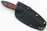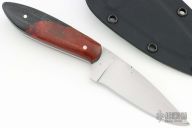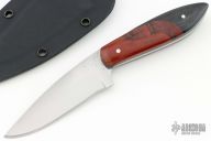 This Hunter by Mark Cucina features a mirror polished L6 steel blade with a full tang construction. .155" Blade Stock. 1.122" Blade Depth. The handle has micarta and wood scales. Includes a kydex sheath. Excellent Condition.