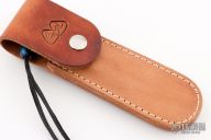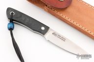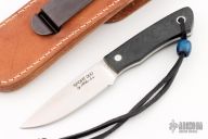 The Sport 200 by Mike Irie features a drop point style hand rub satin finished blade with a notched thumbrest and a full tang construction. 0.131" Blade Stock and .846" Blade Depth. The handle has micarta scales and a lanyard hole. Comes with a brown leather sheath. Marked "6 97" on the blade. Excellent condition.