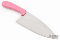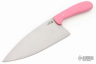 This Chef's knife by Mark Cucina features a satin finished drop point blade with a full tang construction. The handle has pink G-10 scales. Includes a padded zippered case. New from maker!