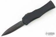 This Hera by Microtech Knives features a double-edged DLC stonewashed blade with dual fullers. The handle has a black aluminum frame with a tip down DLC titanium clip with ceramic ball inset. Dated 08/2021 and s/n 007. Limited edition with trit button. Comes with original box and papers. Excellent condition.