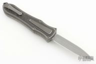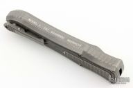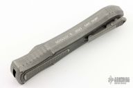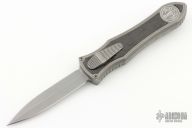 This knife is a Deadlock Model C by Grant and Gavin Hawk. It has a double-edged stonewashed blade. The handle has carbon fiber inlays in the stonewashed titanium frame with a tip down spring clip, titanium. The thumb slide on the handle is also titanium and handle has a titanium overlay. . Comes with a cloth pouch. Grant and Gavin Hawk set out to create a double action OTF with no blade play.... They did it, NO blade play. Comes with tool and an embroidered taco pouch. Excellent Condition.
